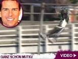 Aber Tom ist momentan topfit: Nach kurzen Stretch-Übungen nahm der 47-Jährige ordentlich Anlauf – und sprang!