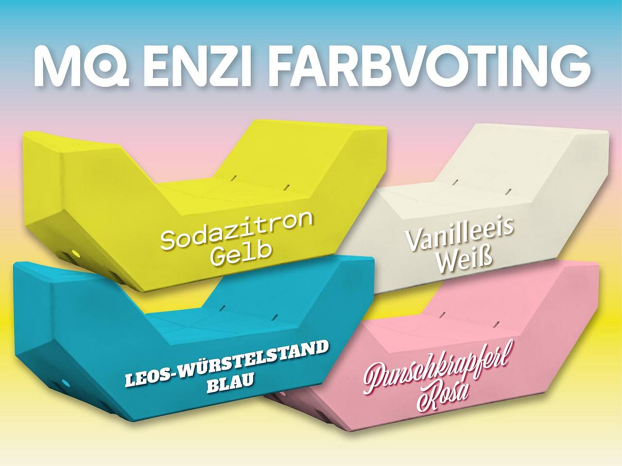 For the 25th anniversary of the MuseumsQuartier (MQ), the Enzi seating furniture in the main courtyard will receive two new colors simultaneously for the first time in 2026: According to a release on Monday, around 20,000 people cast their votes, and "punch cake pink" (47.43 percent) as well as "soda lemon yellow" (26.8 percent) prevailed.