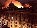 Die Lipizzaner der Spanischen Hofreitschule wurden eilends aus ihren Ställen in Sicherheit gebracht. Die Ursache des Feuers konnte nie restlos geklärt werden.