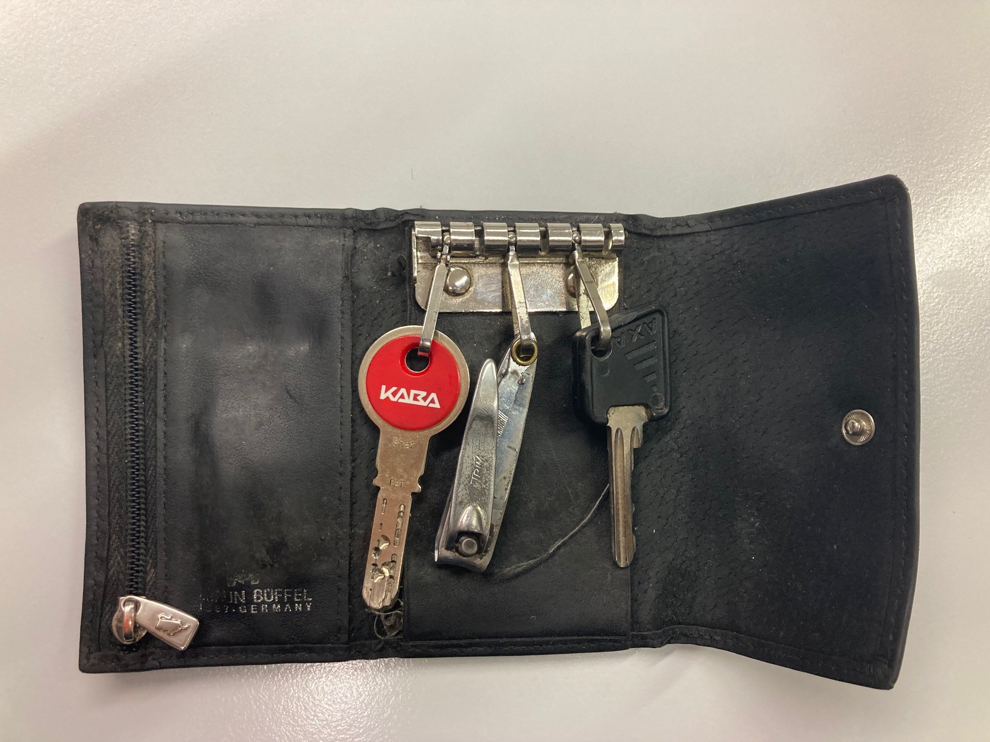 • Lederetui mit zwei Schlüsseln, Nagelknipser