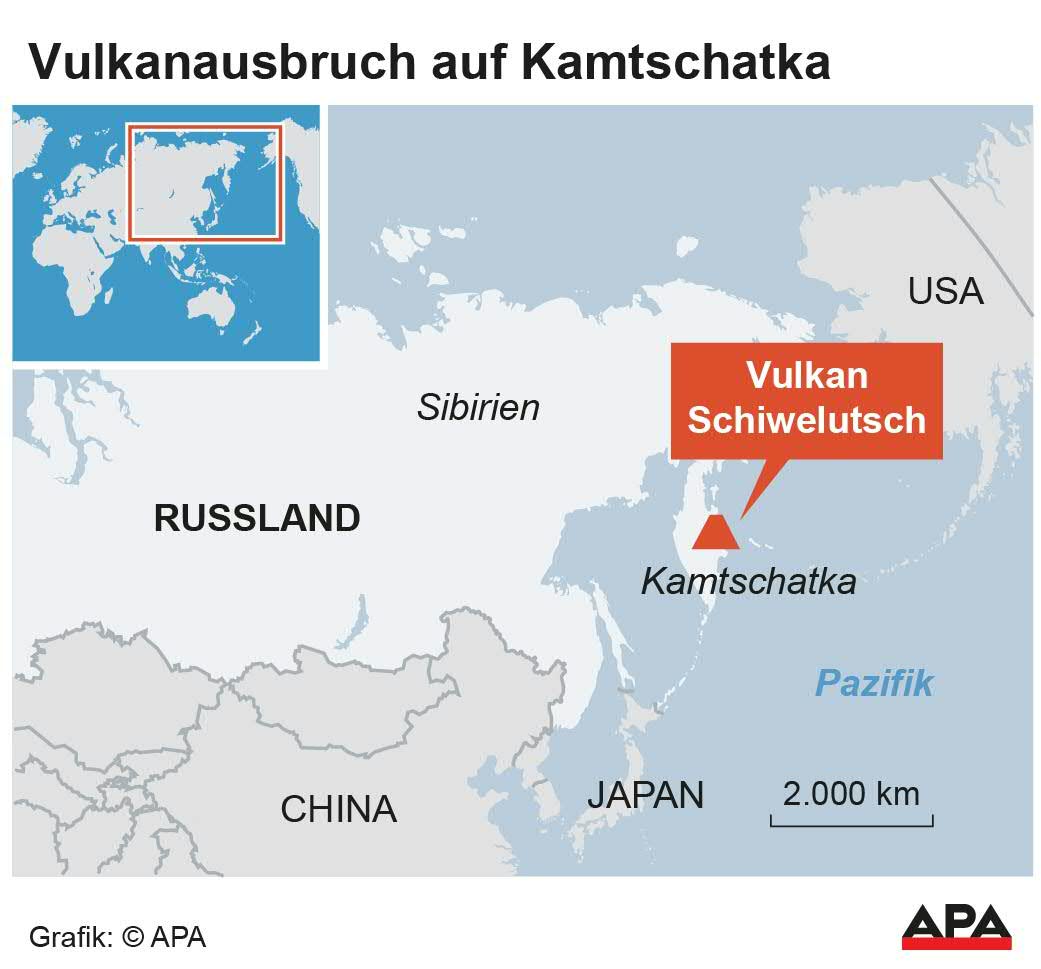 Eine große Aschewolke treibe westlich des Vulkans und es könne jederzeit zu Ascheexplosionen von bis zu 15 Kilometern Höhe kommen. Der Vulkan Schiwelutsch ist der nördlichste und einer der größten und aktivsten Vulkane Kamtschatkas. An der russischen Halbinsel entlang liegt die Hauptflugroute zwischen den USA und Japan.
