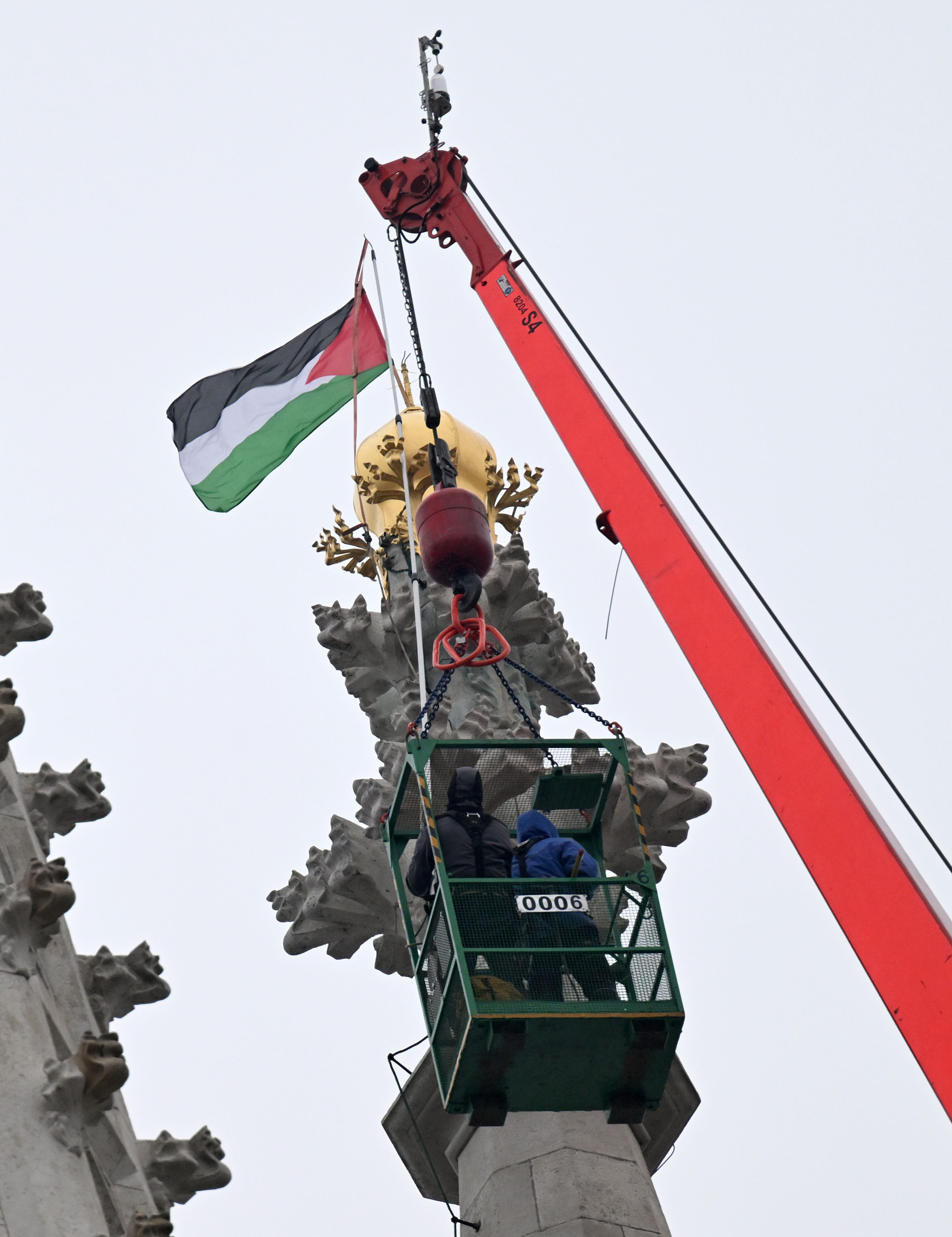 Erst am Dienstag wurden die Palästina-Flaggen an den Spitzen der Wiener Votivkirche mittels Kran entfernt.