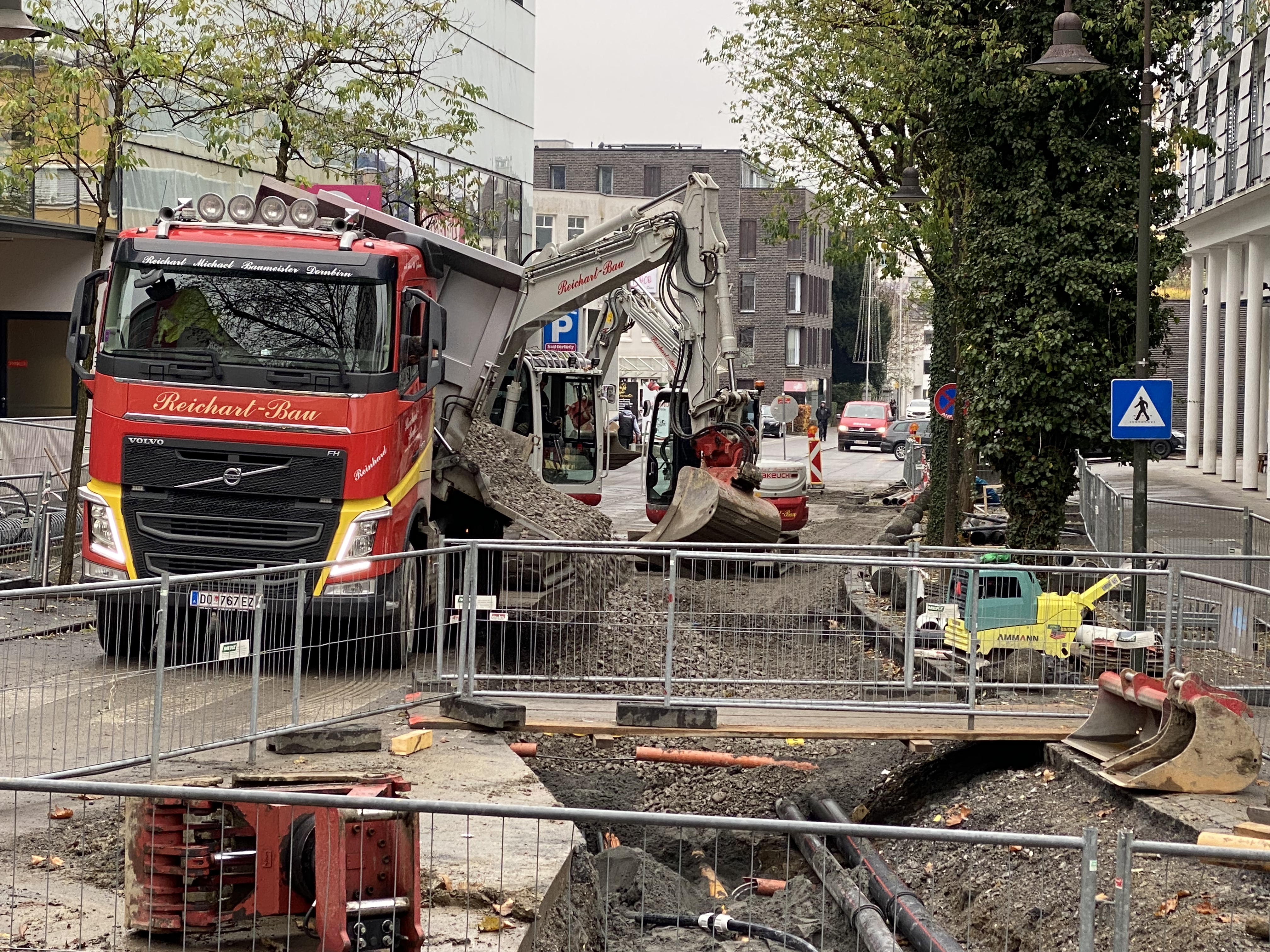 Hilbe Installationen aus Dornbirn führt hier derzeit Arbeiten für Fernwärme durch. In der Schulgasse und Mozartstraße werden zur Zeit Versorgungsleitungen gelegt, wie Hilbe Installationen auf VOL.AT-Nachfrage bestätigt.