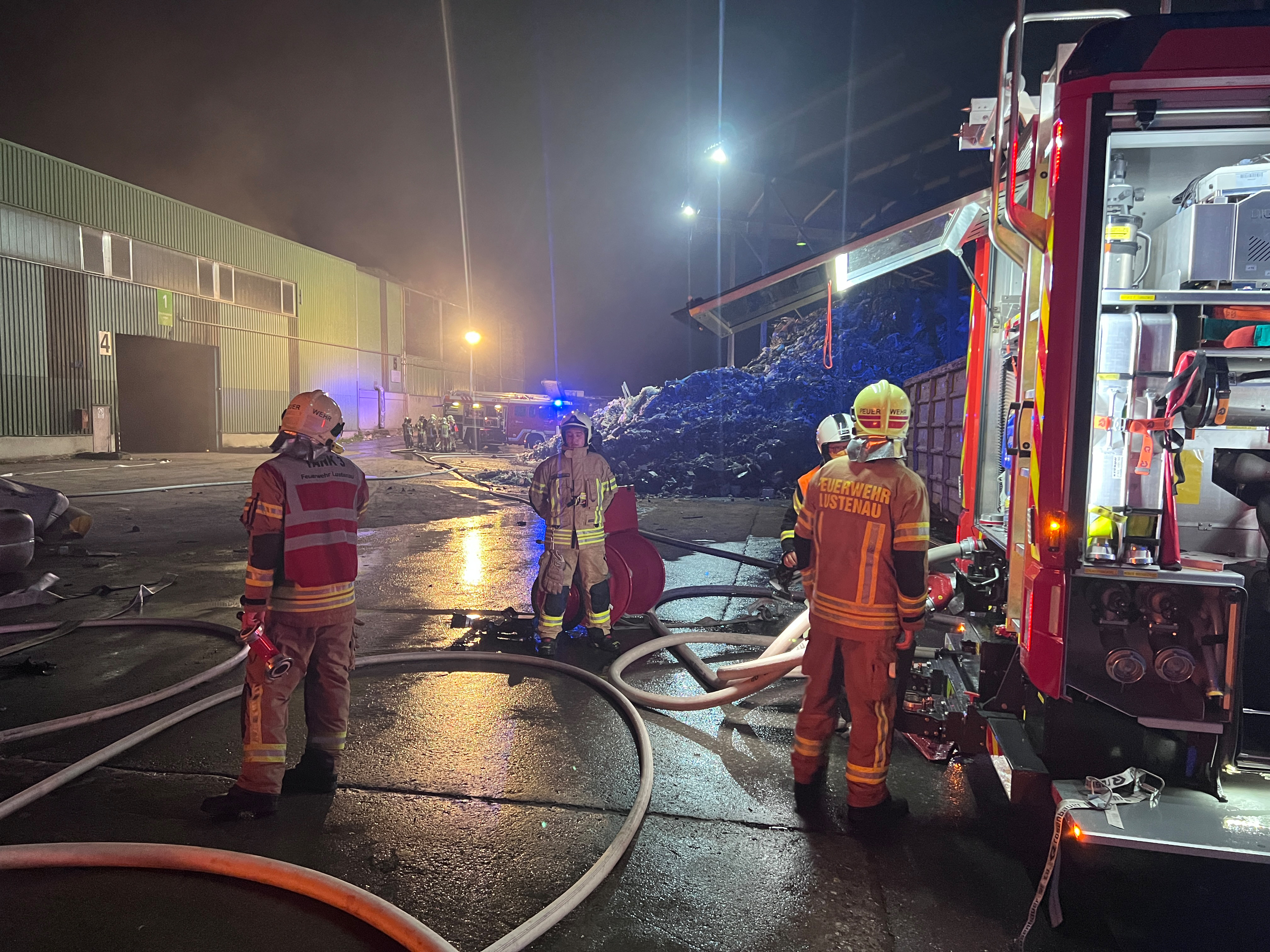 Dank der Zusammenarbeit aller Einsatzkräfte konnte man das Feuer schnell unter Kontrolle bringen und ein Übergreifen auf weitere Hallen verhindern. Zudem konnte man um zwei Uhr Brand aus bei der Halle melden. Dann musste nur noch das abtransportierte Material unter Aufsicht gelöscht werden. Laut dem Einsatzleiter konnten die Feuerwehrleute um vier Uhr ihren Dienst beenden.