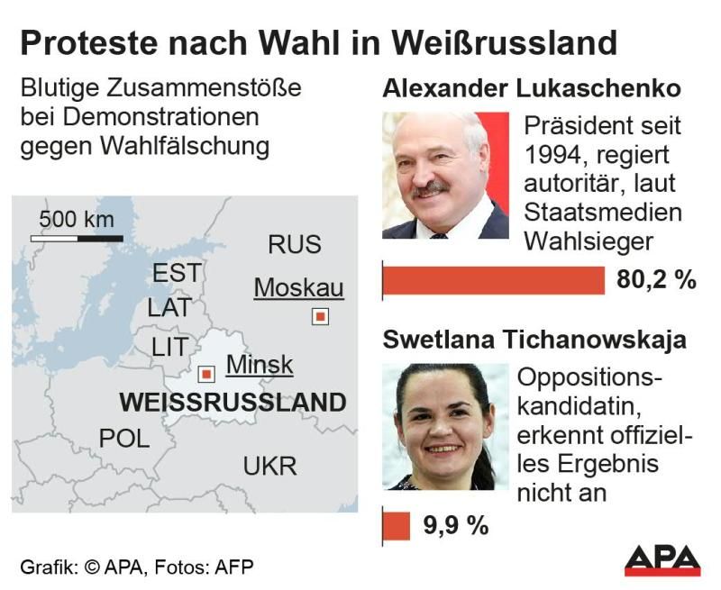 Seit der Präsidentschaftswahl am Sonntag kommt es zu Protesten in Minsk gegen die Regierung des Amtsinhabers und offiziellen Wahlsiegers Alexander Lukaschenko.