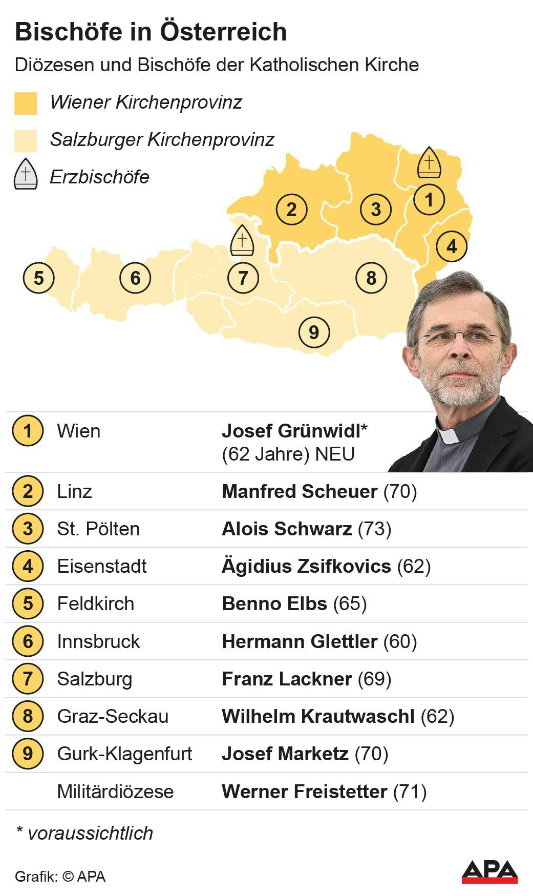 Josef Grünwidl hat das Amt des Erzbischofs jedenfalls nicht aktiv angestrebt: Noch vor einigen Wochen hatte er sich selbst noch aus dem Rennen um das Amt genommen. Manche seiner Positionen sind auch nicht unbedingt mit jenen des Vatikan deckungsgleich. So hatte er sich im April gegen das Pflicht-Zölibat ausgesprochen. Der 62-Jährige hat durchaus Erfahrung in der Erzdiözese. 1993 wurde er für fünf Jahre Sekretär des neu ernannten Erzbischofs Schönborn. Vor seiner Ernennung zum Administrator war er geschäftsführender Vorsitzender des Wiener Priesterrats.