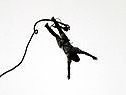 Die kurze Sprungpause, in der Raimund Köhler gründlich von Dr. Franz Eiter und Dr. Hermann Köhle untersucht wird, wurde von den anwesenden VIPs für eigene Bungy Sprünge genutzt. Judomeisterin Cindy Kaniok und Philip von den Dorfrockern wagten den 94 Meter Sprung in eine der schönsten Schluchten des Alpenraum. Europas höchste Hängebrücke – die Benni Raich Brücke
