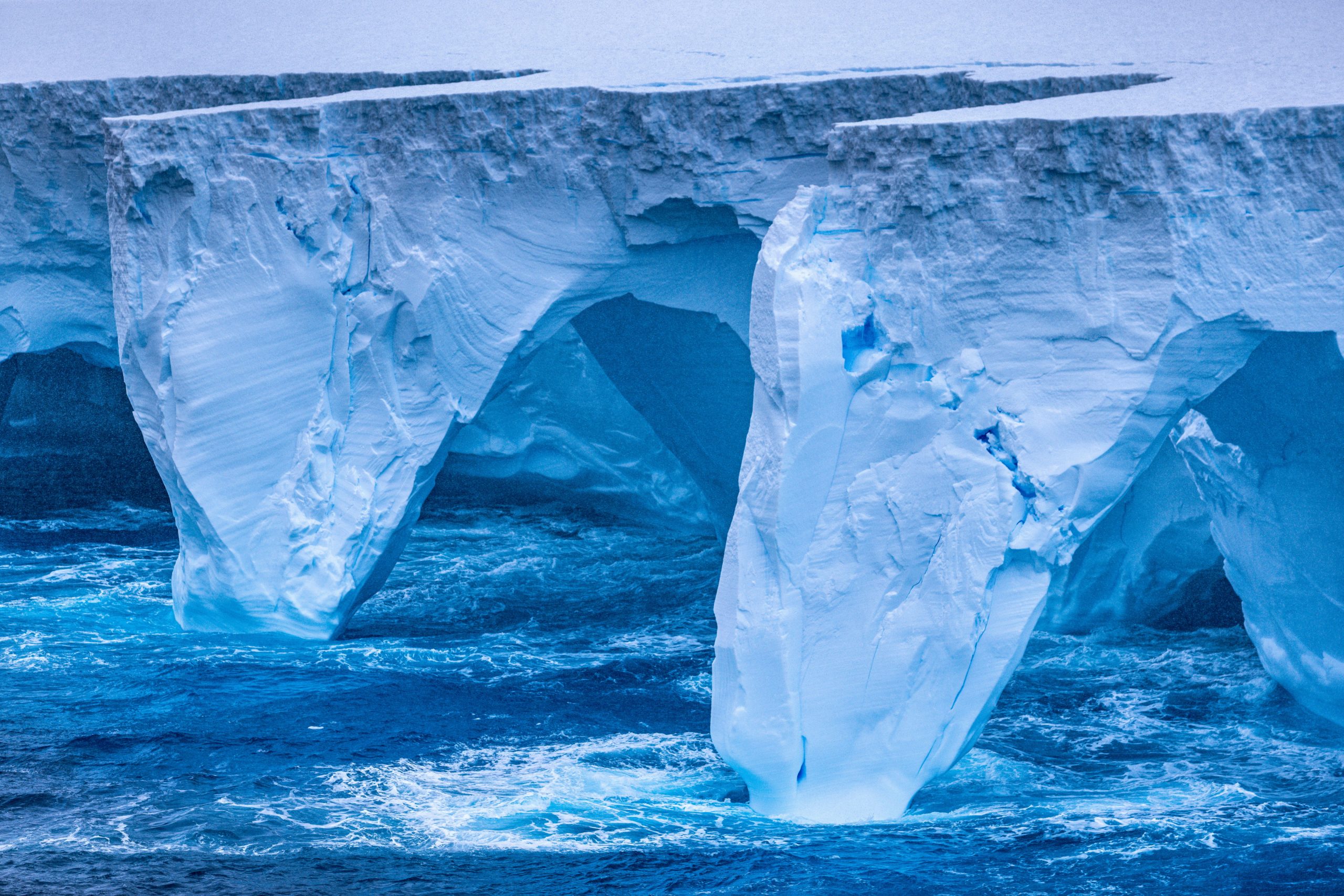 Der Eisberg ist rund 4.000 Quadratkilometer groß, rund zehnmal so groß wie Wien. Inzwischen haben Wellen und Witterung riesige Bögen und höhlenartige Vertiefungen in den Koloss gemeißelt, wie Aufnahmen von einem Schiff des Unternehmens Eyos Expeditions zeigten.