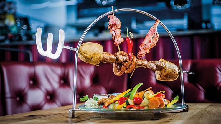 Das ist die schwierigste Frage. Ganz nach Lust, Laune, Uhrzeit und Verfassung gibt es für mich nur Lieblingsgerichte. Ganz nach dem Motto BIG MEALS, DRINKS & MUSIC. Jetzt gerade habe ich einen Bärenhunger und würde den Werkstatt Spieß empfehlen. Geballte Ladung Rindsfilet vom Grill mit Paprika, Zwiebeln und Ofenkartoffel, feinen Dips dazu knackiges Röstgemüse, einfach lecker.