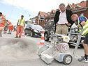 Schwierigste Bedingungen für Straßenbauarbeiter