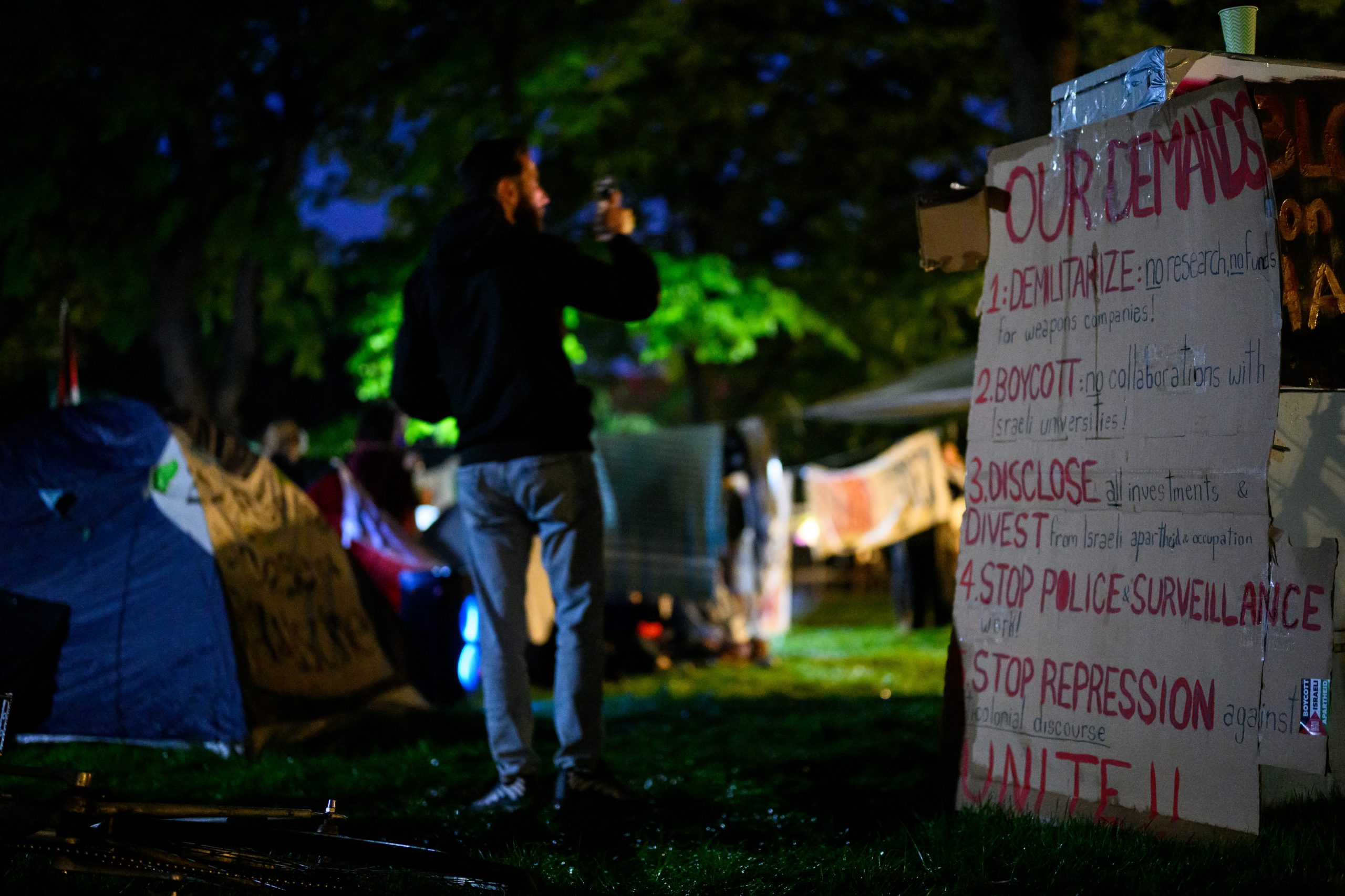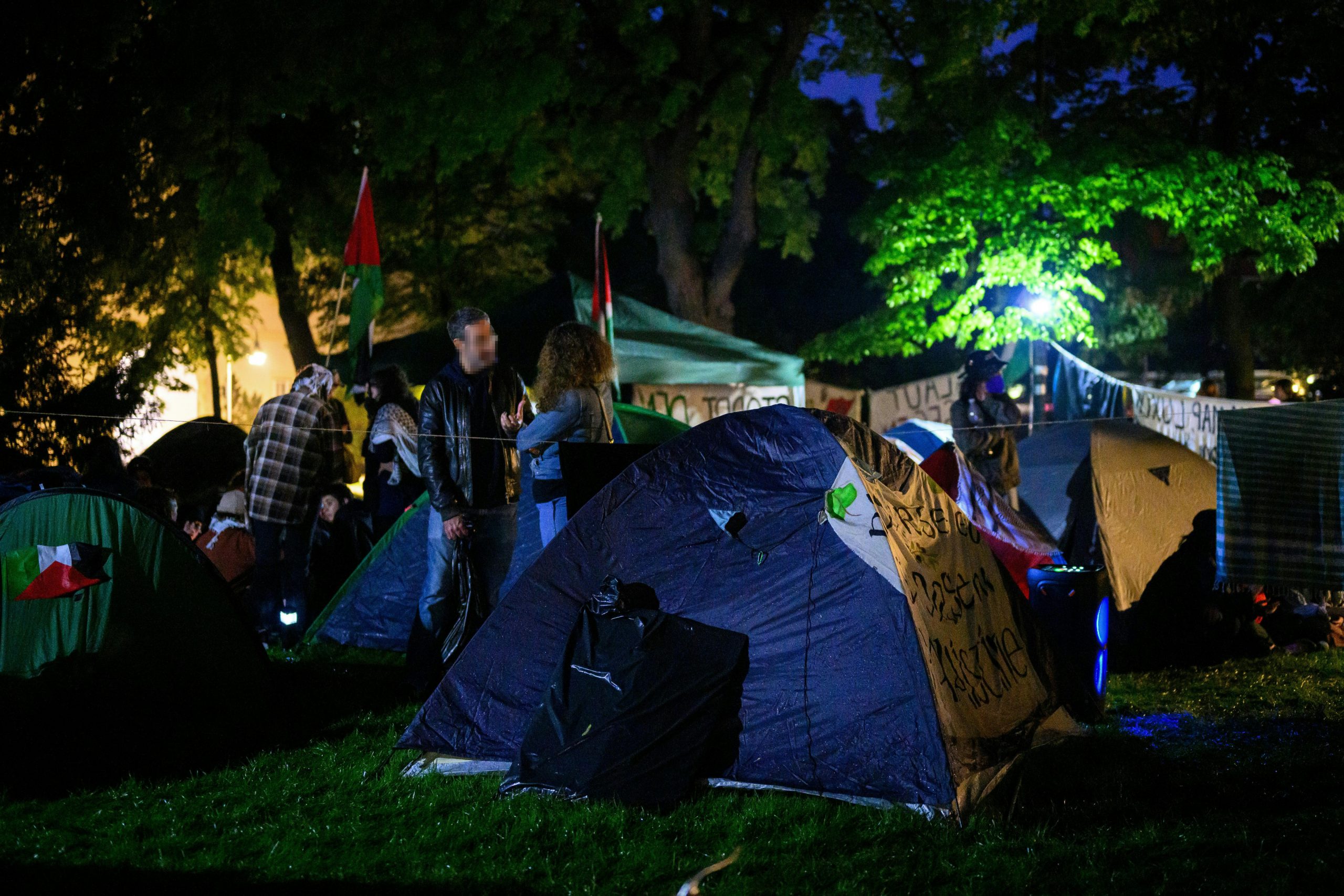 Die Aktivisten folgen wohl Protestcamps an Hochschulen in den USA, wo sie mittlerweile seit Wochen für eine intensive politische Debatte sorgen. Wie in den Vereinigten Staaten verurteilen die wohl linksgerichteten Demonstranten die israelischen Angriffe in Gaza.