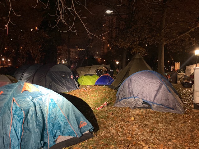Das Camp hatte die bekannte Verschwörungstheoretikerin Jennifer Klauninger organisiert. Laut Informationen der APA war sie auch unter jenen vier Personen, die sich bis zum Schluss weigerten, das Camp aufzulösen. Seit 8. November hatten die Aktivisten den Stadtpark besetzt, dutzende Zelte wurden aufgebaut, immer wieder Lagerfeuer entfacht, Verschwörungs-Theorien verbreitet. Masken trug keiner der Teilnehmer. Laut Polizei wurden zahlreiche Anrainer und Parkbesucher belästigt, auch von einer nahegelegenen Schule langten Beschwerden ein, dass Schulkinder von den Demonstranten "in aufdringlicher Weise mit bedenklichen Inhalten bedrängt und belästigt" worden sein sollen. Dass seit Montag in ganz Österreich der Lockdown galt, war im Stadtpark nicht wahrnehmbar.