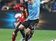 70.000 Zuschauer in der Soccer City von Johannesburg, panafrikanische Unterstützungserklärungen im Vorfeld der Partie und ein großes Selbstvertrauen. Dennoch oder gerade deswegen dauerte es fast eine halbe Stunde, bis Ghana auf Betriebstemperatur gelaufen war. Bis dahin spielte nur die lauffreudige und aggressive Mannschaft aus Uruguay, die das Geschehen völlig unter Kontrolle hatte. Gemeinsame Aktionen des gefürchteten Sturmduos Diego Forlan/Suarez waren freilich selten, vor allem über Eckbälle und Freistöße wurde die “Celeste” gefährlich.