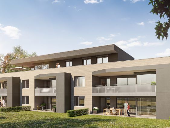 Die moderne Architektur und die Freiräume zwischen den zwei Häusern bieten großzügige Grünflächen, sodass sich das Wohnprojekt harmonisch in das Landschaftsbild einfügt. Die 2-, 3- und 4-Zimmer-Wohnungen weisen eine hochwertige Ausstattung aus und bieten große Balkone bzw. Terrassen in Südausrichtung uvm.