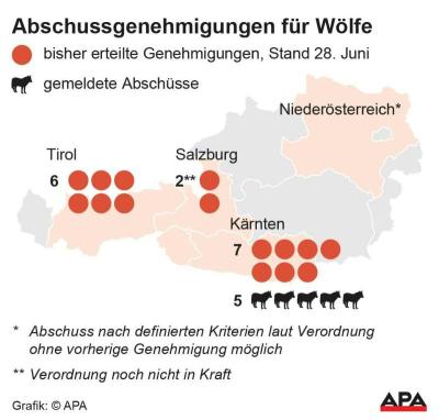 Die Präsenz der Wölfe verursacht freilich Konflikte. So gab es von Jänner bis Juni 2023 bereits 162 nachgewiesene Risse bei Schafen und Ziegen. Teilweise versuche man, dem mit Abschüssen entgegenzuwirken. In Kärnten wurden sechs "Problemwölfe" legal getötet, einer jeweils in Salzburg und Osttirol.