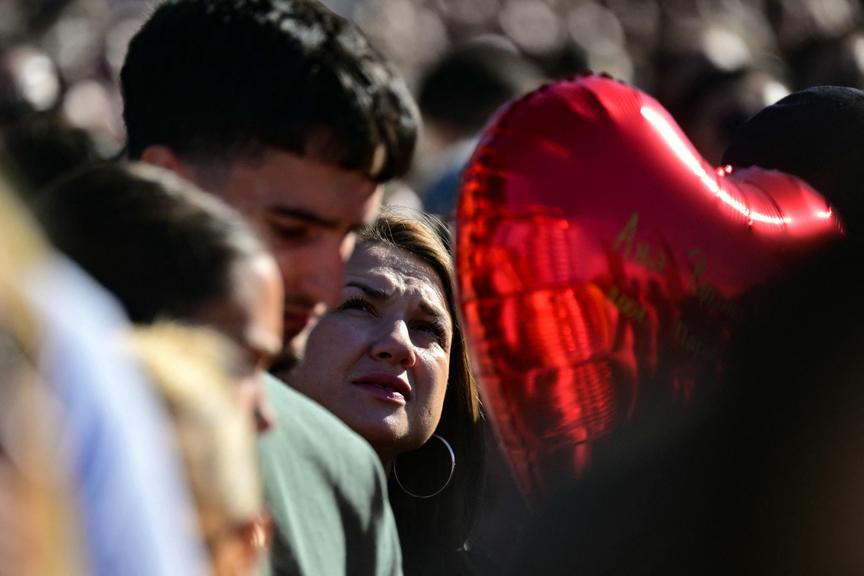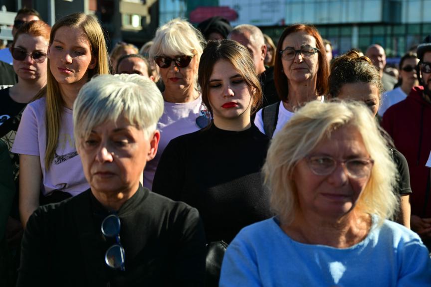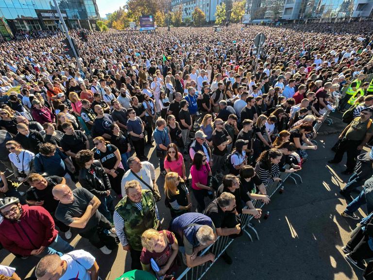 Still verfolgte die Menschenmenge die 16 Gedenkminuten für die 16 Opfer. Das jüngste war erst sechs Jahre alt. "Alles ist gleich in meinem Ort, nur ich bin nicht mehr da", hieß es im Lied, das daraufhin vom Chor intoniert wurde. Es ging um die Filmmusik, die 1989 in einem Film des Belgrader Regisseurs Goran Markovic von der serbischen Schauspielerin Anica Dobra gesungen wurde.