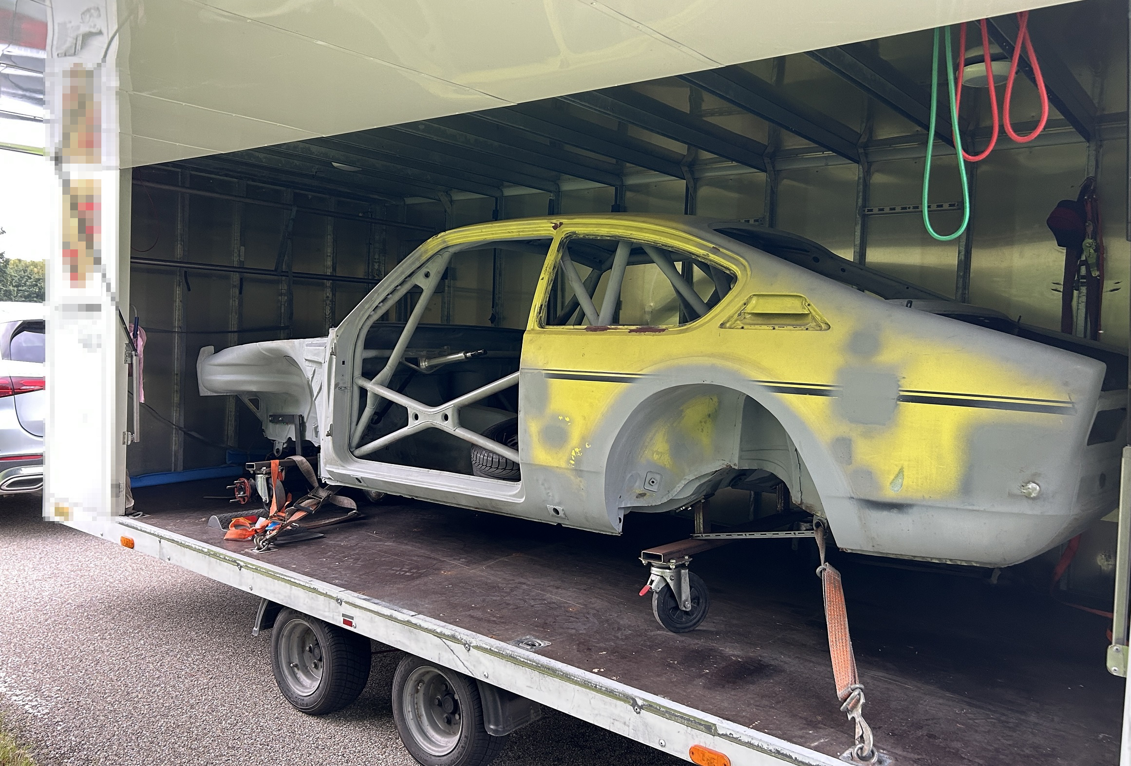 Auf einem Anhänger befand sich die Rohkarosserie eines Opel Kadett 1200 S, inklusive Überrollbügel. Das Fahrzeug stammte aus der Schweiz und war laut Angaben für den Umbau zu einem Rennsportwagen vorgesehen.