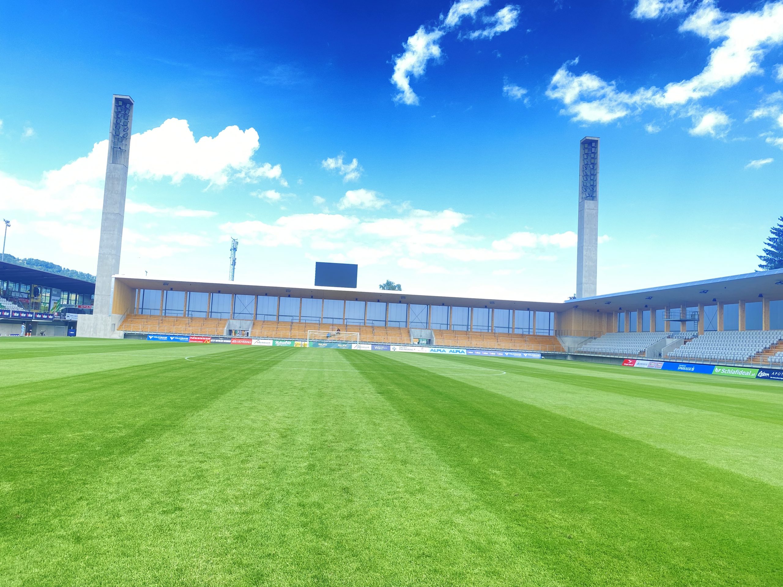 Eineinhalb Jahre war Austria Lustenau "heimatlos", die Heimspiele fanden in Bregenz statt. Jetzt ist der Bau abgeschlossen – moderner, nachhaltiger und mit einem Namen, der für Aufsehen sorgt: Sun Minimeal Arena.