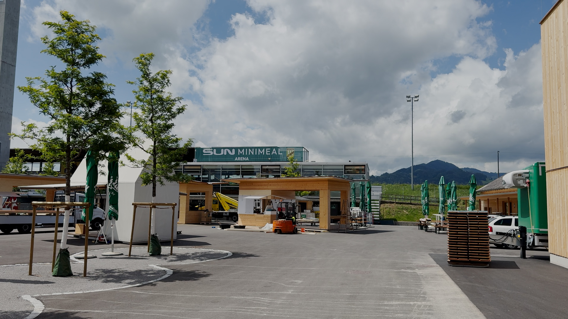 Ein paar letzte Handgriffe noch, dann ist die neue "Sun Minimeal Arena" bereit für die Eröffnung. ©VOL.AT/Waibel