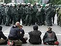 Es würden Steine gegen Einsatzkräfte geworfen, sagte eine Polizeisprecherin am Montag. Auch seien Schienen blockiert worden. 49 Personen seien festgenommen und in Gefangenensammelstellen gebracht worden. Von den 8.500 Teilnehmern seien rund 2.000 dem so genannten schwarzen Block zuzurechnen. Diese seien teilweise vermummt und trügen Schutzkleidung.