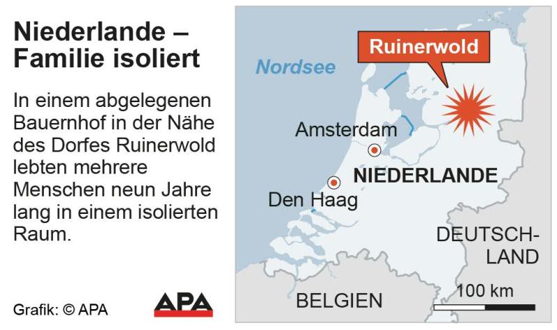 Nach Angaben der Polizei scheint keines der Familienmitglieder in Ruinerwold in Drenthe bei der Grundverwaltung registriert zu sein. Das könnte erklären, warum die Behörden bisher untätig waren. Auf dem abgelegenen, von Bäumen und Hecken umgebenen Bauernhof könnte sich die Familie von auf dem Gelände angebauten Gemüse ernährt haben - auch Tiere, unter anderem eine Ziege, sind dort gehalten worden.