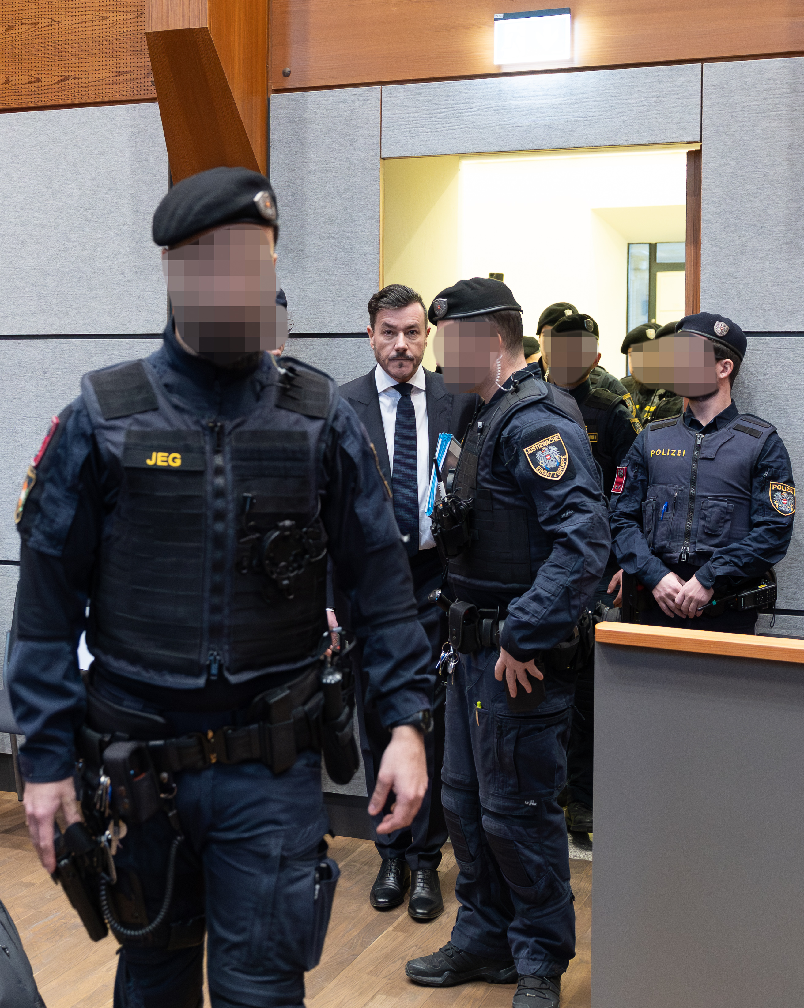 Wie schon beim ersten Krida-Prozess gegen den gestrauchelten früheren Multimilliardär war auch diesmal der Medienandrang vor und im Großen Schwurgerichtssaal des Landesgerichts Innsbruck äußerst groß. Rund 50 Journalistinnen und Journalisten - auch aus dem Ausland - versammelten sich im Saal, hinzukamen zahlreiche Fotografen und Kamerateams. Als der in Untersuchungshaft sitzende Benko von Sicherheitsbeamten - erneut ohne Handschellen - in den Gerichtssaal geführt wurde, ging ein minutenlanges Blitzlichtgewitter auf ihn nieder. Der 48-Jährige ist sichtlich gezeichnet. Ehefrau Nathalie kam erst in den Gerichtssaal, als die Fotografen und Kamerateams den Schwurgerichtssaal bereits verlassen mussten.