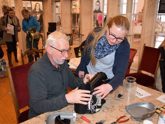 Mit viel Geduld, fachkundigem Wissen und dem richtigen Werkzeug versuchen die „schlauen Füchse“ vom Bludenzer Repair Café auch in diesem Jahr wieder, scheinbar kaputte Haushaltsgeräte zum Laufen zu bringen. Ob dienstverweigende Kaffeemaschine, stummes Radio oder dauerfröstelnder Heizlüfter – mit der tatkräftigen Unterstützung der ehrenamtlichen Helfer kommen diese und noch weitere Elektrokleingeräte bestimmt wieder in Schwung.